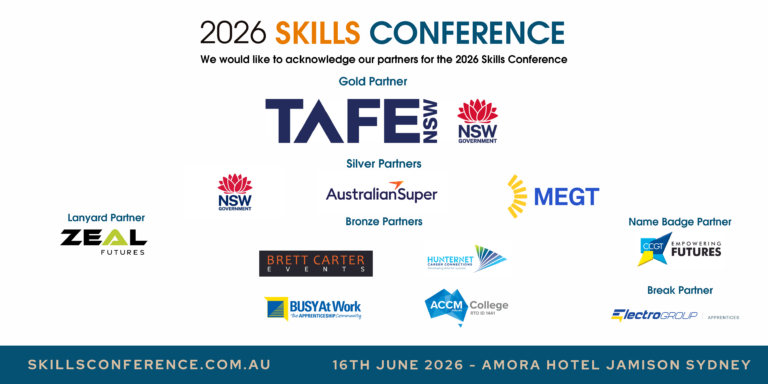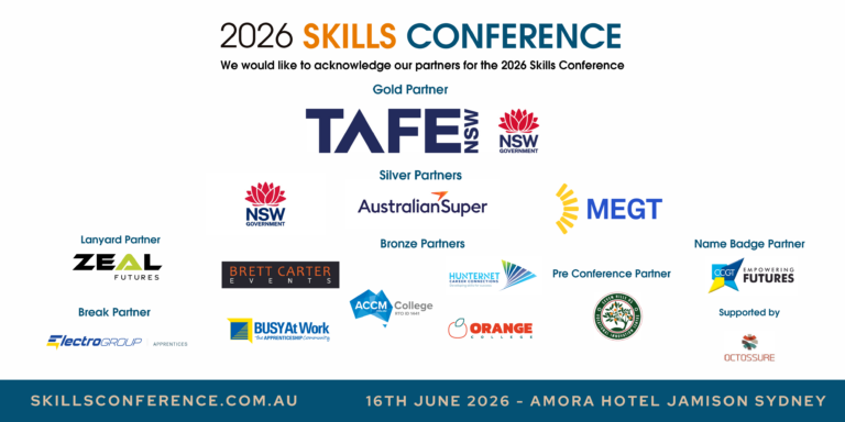 Have you considered being a Corporate Partner of the Skills Conference. Join the likes of TAFE NSW, AustralianSuper, NSW Department of Education and MEGT as long term partners of the event.